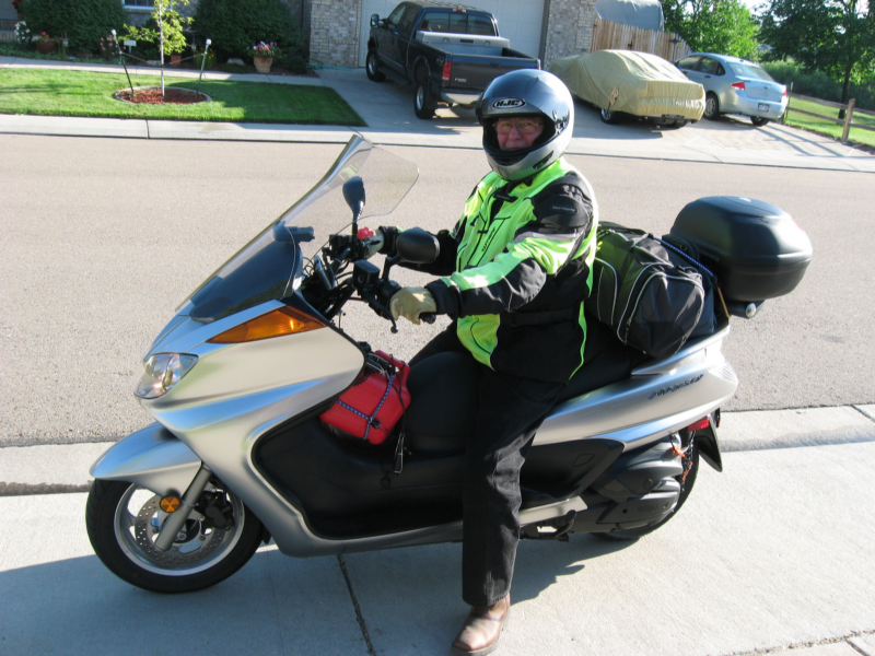 Ready to roll on a 2,600 mile odessey. The bike averaged over 60 mpg.