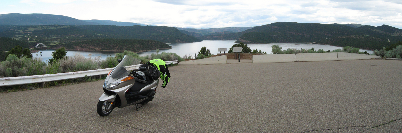 Another shot of Utah's Flaming Gorge: Bike, bridge, and beauty. |