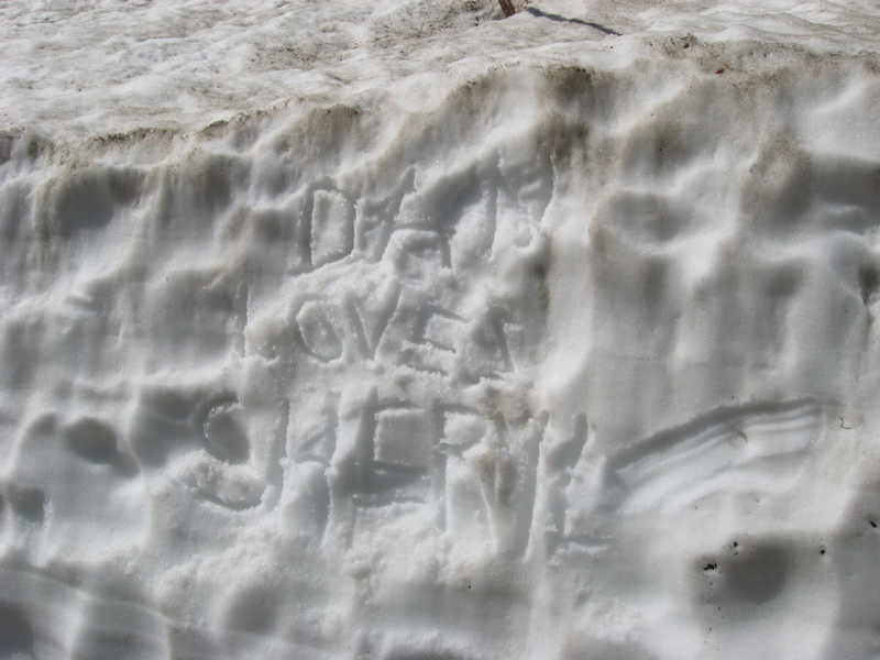 I wrote this message (using my finger) in the snow for my wife Sheryl. |