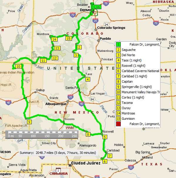COLORADO USA BIKE TRIPS 2Bryce_UT_2400mi.jpg 2CarlsbadNM-MonumentAZ.jpg 2DevilsTower_Sturgis.jpg 2SnowyRangeWY.jpg 2WhitesPagosaSpringsCO81147.jpg CGCMV_route.jpg CO_Western_Loop_2015.jpg FlamingGorge.jpg StovePrairieRoad.jpg SW_CO_925_Miles.jpg