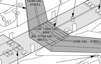 Boeing diagram of 747-100. (Oxygen bottles both fore and aft of center fuel tank.) Source: Boeing online aircraft manual.